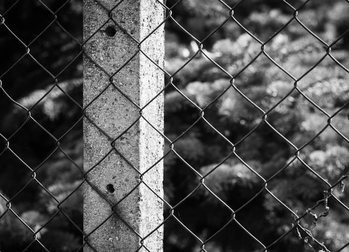 Keywords: fence column wire street city macro close detail close up cable metal iron outdoor outside the safety of the steel irons