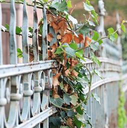 Keywords: fence ivy iron metal grid limit old iron construction foreclosure garden fence stainless barrier rusty green withered weathered plant
