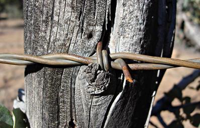Keywords: fence metal wire wood barbed security barrier sharp barb steel protection barbwire danger defense enclosure stump old antique western horses west wild west twisted protective rust forbidden