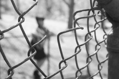 Keywords: fence park city gritty landscape outdoor lonely woman emotion urban hip-hop intervention black and white gate broken