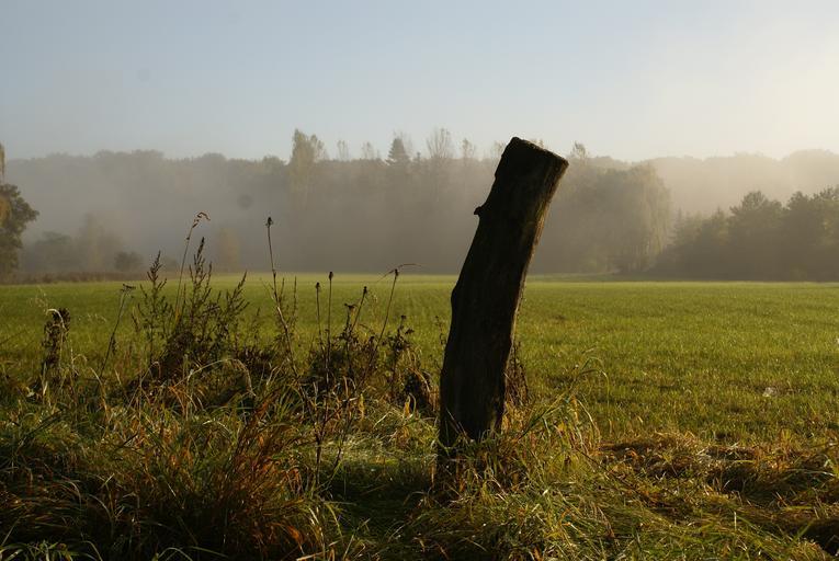 Keywords: fence post fog meadow autumn landscape morgenstimmung grass