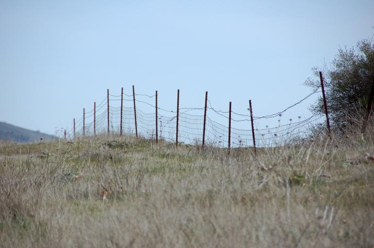 Keywords: fence wire fence field fence barbed wire field sky blue sky rural