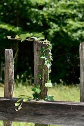 Keywords: fence wood fence overgrown old ivy plant nature close
