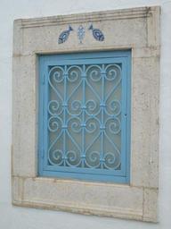| Keywords: Fenetre Sidi Bou Said.JPG Fenêtre en fer forgé de Sidi Bou Saïd Tunisie surplombée par des poissons symbole de protection contre le mauvais sort own 2008-10-02 Moumou82 Own work all rights released Public domain Buildings in Sidi Bou Said Barred windows in Tunisia Wrought iron |