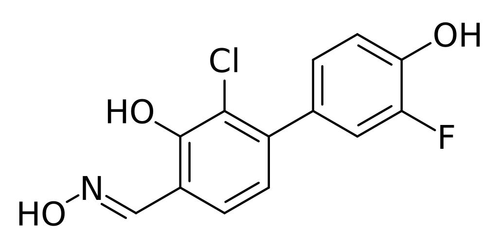 Keywords: FERb 033.svg Chemical structure of FERb 033 Own 19 31 21 October 2016 UTC Ed Edgar181 Oximes Estrogens Fluorophenols Chlorophenols
