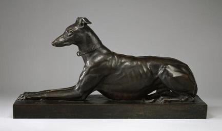 | Keywords: Ferdinand Barbedienne - Greyhound - Walters 27475 - Profile.jpg Walters Art Museum artwork Creator Antoine-Louis Barye A patron named Comte Nicolaļ commissioned a marble statue of a greyhound To fulfill the commission Barye bought a black greyhound named Tom to serve as a model and the pet soon became a familiar sight to Barye's neighbors The location of the marble is no longer known but in 1889 George A Lucas discovered a plaster model now in the Peabody Institute that had been used by the marble carvers He subsequently ordered several casts including this one made by the foundry of Ferdinand Barbedienne modeled 1868; posthumously cast post-1875 bronze with warm brown patina cm 45 7 87 6 25 4 accession number 27 475 28254 William T Walters Baltimore 1889-1890 by purchase George A Lucas as agent Henry Walters city Baltimore Walters Art Museum Henry Walters Acquired by William T Walters 1889-1890 Signature Cast through from model sharp and clear BARYE The Works of Antoine-Louis Barye American Art Gallery New York New York 1889-1890 Best in Show The Dog in Art from the Renaissance to Today The Bruce Museum Greenwich; The Museum of Fine Arts Houston Houston 2006-2007 Untamed The Art of Antoine-Louis Barye The Walters Art Museum Baltimore; Philbrook Museum of Art Tulsa; The Henry Morrison Flagler Museum Palm Beach 2007-2008 place of origin Paris France Walters Art Museum license Sculptures by Antoine-Louis Barye Ferdinand Barbedienne Media contributed by the Walters Art Museum needs category review Sculptures in the Walters Art Museum |
