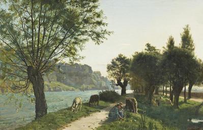 Keywords: Ferdinand Hodler - Schafe am Sentier des Saules (1878).jpg Artwork Creator Ferdinand Hodler 1878 oil canvas cm 97 135 accession number object history Barthélemy Menn Genf bis 1893 <br/>Pochelon Frères Genf 1921 <br/>Marc Birkigt Genf nach 1921 <br/>Privatbesitz Schweiz credit line exhibition history evtl Genf 1878 Turnus Nr 164 Paysage à la Jonction <br/>Bern Kunstmuseum Hodler-Gedächtnis-Ausstellung 1921 Nr 67 Weidenweg / Sentier des Saules 1878 F Hodler 1878 ~ lower right signature / date http //www sothebys com/de/auctions/ecatalogue/2013/schweizer-kunst-swiss-art-zh1306/lot 11 html Sotheby's Zürich 03 Dezember 2013 Los 11 PD-old-auto-1923 1918 Landscape paintings by Ferdinand Hodler Landscape paintings of Switzerland 1870s landscape paintings Images from Sotheby's