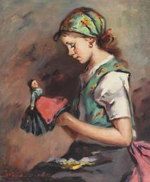 Keywords: Ferenczy, Károly - Fiatal lány a babával.jpg Artwork Creator Károly Ferenczy oil canvas cm 61 50 2 object history credit line accession number http //www arcadja com/auctions/de/private/ferenczy_karoly/kunstwerken/44696/0/ Waddington's Toronto 2007 via ARCADJA auction results PD-old-auto-1923 1917 Paintings by Károly Ferenczy Paintings of girls with dolls |