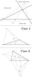 | Keywords: Fermat Point Scope.svg en A purely geometric treatment of the Fermat point own MRFS 2008-08-31 fermat proof png Source The main reason for this diagram is to emphasise that the Fermat point is NOT the same as the first isogonic center which is unfortunately a very widespread misconception The source is licensed under the same license as the image Feel free to edit fix or improve it fermat_point_scope euk <pre> Combination of 3 figures in 1 box 0 0 10 24 draw segment point 0 9 point 10 9 draw segment point 0 16 point 10 16 Proof that the Fermat point lies within the triangle A point 7 21 B point 1 18 C point 9 18 D point 4 17 E point 7 5 23 thickness 2 draw line B C draw line A B draw line A C thickness 0 5 draw segment D A draw segment D B draw segment D C draw segment E A draw segment E B draw segment E C label A 0 2 170 label B 0 2 110 label C 0 2 45 draw P' intersection line A D line B C 0 1 280 draw P D 0 1 270 draw \textbf A-zone only D 2 350 draw P' A 0 2 355 draw P E 0 2 0 draw \textbf B-zone and C-zone E 0 4 90 draw \textbf C-zone only segment A B 2 120 Case 1 - an angle at least 120 degrees H point 6 11 5 I point 1 10 J point 9 10 K point 4 8 10 5 I H F equilateral K H G equilateral thickness 2 draw H I J thickness 0 5 draw H K G draw segment F H draw segment F I draw segment F G draw segment K I draw segment K J draw A H 0 2 20 draw B I 0 2 180 draw C J 0 2 0 draw P K 0 1 270 draw Q G 0 1 210 draw F F 0 2 180 draw \textbf \Huge Case 1 F 4 5 0 mark segment K I simple 0 7 mark segment G F simple 0 7 mark segment H K double 0 7 mark segment K G double 0 7 mark segment G H double 0 7 mark segment H I triple 0 7 mark segment I F triple 0 7 mark segment F H triple 0 7 Case 2 - no angle greater than 120 degrees L point 4 8 M point 3 5 5 N point 9 5 P point 6 2 6 1 M L O equilateral N P Q equilateral N M R equilateral S intersection line N O line L R N S T equilateral thickness 2 draw L M N thickness 0 5 draw N P Q draw segment M R draw segment N R draw segment O L draw segment O M draw segment R Q draw segment P L draw segment P N draw segment M P draw segment S M draw A L 0 2 20 draw B M 0 2 180 draw C N 0 2 0 draw P P 0 2 180 draw Q Q 0 1 180 draw F O 0 2 180 draw D R 0 2 0 draw P_0 S 0 1 45 draw Q_0 T 0 1 0 draw \textbf \Huge Case 2 L 2 5 0 draw segment L R draw segment N O draw segment N T mark segment M P simple 0 7 mark segment Q R simple 0 7 mark segment N P triple 0 7 mark segment N Q triple 0 7 mark segment P Q triple 0 7 mark segment M N double 0 7 mark segment M R double 0 7 mark segment N R double 0 7 </pre> Fermat point |