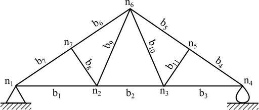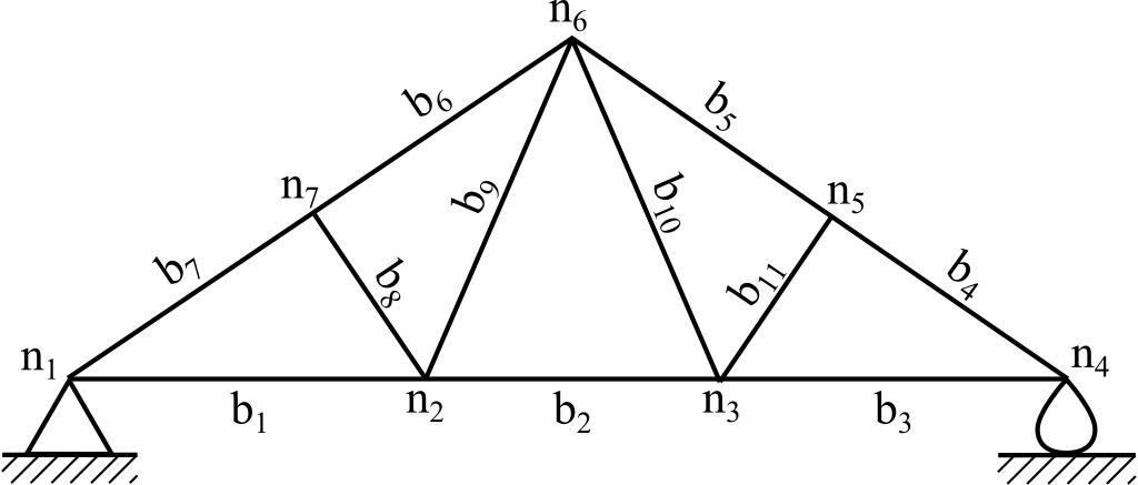 Keywords: Ferme polonceau numerote.svg fr Ferme Polonceau avec numérotation des barres et des nœuds en Polonceau A-frame with numbering of bars and nodes 2013-03-15 16 43 15 own Cdang inkscape cdang cc-zero Uploaded with UploadWizard Truss drawings