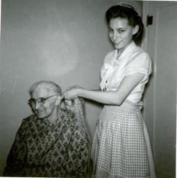 | Keywords: fern derstine fernderstine mary schlegel maryschlegel hair mennonite board of missions maple lawn homes home for the aged eureka illinois voluntary service mennonite voluntary service elderly nursing homes mennoniteboardofmissionsmaplelawnhomeshomefortheagedeurekaillinoisvoluntaryservicemennonitevoluntaryserviceelderlynursinghomes people indoor Caption: May, 1960. VS Fern Derstine combs Mary Schlegel's hair. Citation: Mennonite Board of Missions. Photographs. Illinois, Eureka, Home for the Aged, 1957-1961. IV-10-7.2 Box 3 Folder 73. Mennonite Church USA Archives - Goshen. Goshen, Indiana. Caption: May, 1960. VS Fern Derstine combs Mary Schlegel's hair. Citation: Mennonite Board of Missions. Photographs. Illinois, Eureka, Home for the Aged, 1957-1961. IV-10-7.2 Box 3 Folder 73. Mennonite Church USA Archives - Goshen. Goshen, Indiana. |