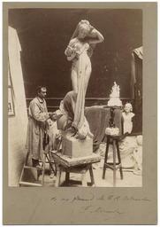 | Keywords: smithsonian institution smithsonianinstitution sculptor sculpture artists smock signature handwriting workshop tools loft man sculpting woman drapped in mansculptingwomandrappedin studio romantic marble archives of american art archivesofamericanart Description: Miranda in his studio, working on a sculpture. Annotated: "to my friend Mr. W. H. (?) Ostrander, F. Miranda." Photographer unknown. Miranda, Fernando, b. 1842 Creator/Photographer: Unidentified photographer Medium: Black and white photographic print Dimensions: 30 cm x 21 cm Date: c. 1870 Persistent URL: www.aaa.si.edu/collections/images/detail/fernando-miranda... Repository: Archives of American Art Accession number: aaa_miscphot_8259 Description: Miranda in his studio, working on a sculpture. Annotated: "to my friend Mr. W. H. (?) Ostrander, F. Miranda." Photographer unknown. Miranda, Fernando, b. 1842 Creator/Photographer: Unidentified photographer Medium: Black and white photographic print Dimensions: 30 cm x 21 cm Date: c. 1870 Persistent URL: www.aaa.si.edu/collections/images/detail/fernando-miranda... Repository: Archives of American Art Accession number: aaa_miscphot_8259 |