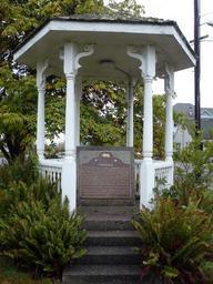 | Keywords: Ferndale CA Historical Marker Gazebo.JPG en The gazebo from the movie The Majestic was donated to the City of Ferndale placed in town hall park and the historical marker placed inside The marker reads Ferndale This pioneer agricultural community settled in 1852 helped feed the booming population of mid-century San Francisco Long known as Cream City Ferndale made innovative and lasting contributions to the dairy industry Local creameries and the town's role as a transportation and shipping center in the late 19th and early 20th centuries fostered prosperity which produced Ferndale's outstanding Victorian-Gothic residential and false-front commercial architecture California Registered Historical Landmark No 883 Plaque placed by the State Department of Parks and Recreation in cooperation with the Ferndale Chamber of Commerce Historical Committee and community effort September 12 1976 own Ellin Beltz 2012-10-16 40 34 51 45 N 124 15 36 02 W region US Buildings in Ferndale California Main Street Ferndale California Historical markers in Humboldt County California Taken with Panasonic Lumix DMC-FX12Photographs by Ellin Beltz |