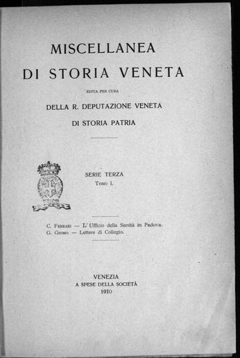 | Keywords: Ferrari - Ufficio della Sanità di Padova nella prima meta del sec. 17., 1909 - 1133718.tif Book Ferrari Ciro Ufficio della Sanità di Padova nella prima meta del sec 17 Tipografia Libreria Emiliana Venezia ita it L'Ufficio della Sanità di Padova nella prima meta del sec 17 / Ciro Ferrari - Venezia Tipografia Libreria Emiliana 1909 - XVI 265 p ; 24 cm - Miscellanea di storia veneta Serie 3 - Estratto da Miscellanea di storia veneta Serie 3 tomo 1 BEIC 1133718 Institution BEIC PD-old-100-1923 History of Italy Diritto europeo medievale e moderno |