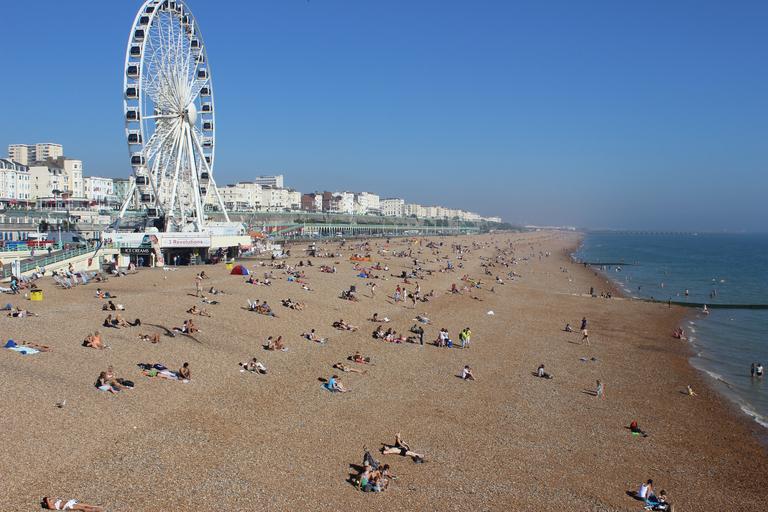 Keywords: ferris wheel coast beach water wave ocean sea people landscape human england
