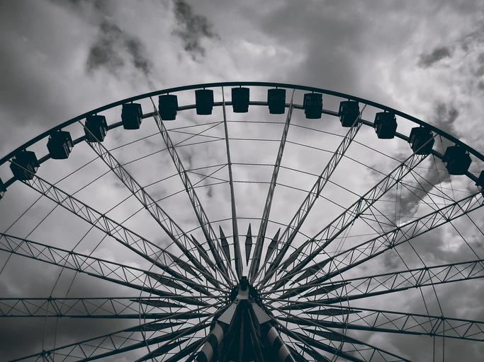 Keywords: ferris wheel fair folk festival year market rides carousel sky gloomy thunderstorm forward black white