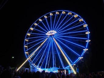 Keywords: ferris wheel fair ride night fun lights night photograph folk festival