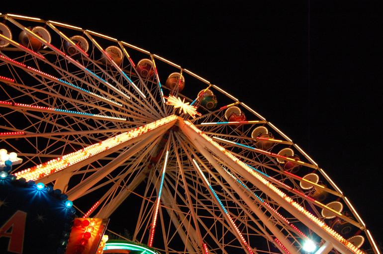 Keywords: ferris wheel light night year market colorful fun hustle and bustle