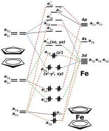 Keywords: Ferrocen MO-Scheme.svg de MO-Schema von Ferrocen en MO-scheme of ferrocene 2011-12-22 own Bert Kilanowski cc-zero Ferrocene