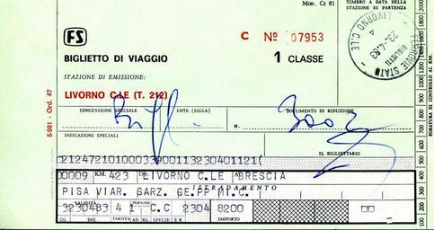 Keywords: Ferrovie dello Stato train ticket 07953.jpg en ITA Ferrovie dello Stato Italiane Train ticket issued on April 23 1983 Own work from scan Piergiuliano Chesi 1983-04-23 trademarked Rail tickets of Italy