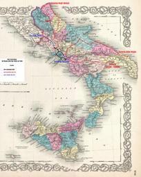 | Keywords: Ferrovie due sicilie 1860.png Situazione della rete ferroviara del Regno delle Due Sicilie al 1860 sono indicate le linee funzionanti in nero e quelle progettate in rosso e in costruzione a partire dal 1855 in blu su mappa J H Colton Co New York 1855 Fonte Francesco Ogliari Storia dei trasporti italiani volume 21° Terra di primati Cavallotti Editore Milano 1975 it wikipedia 2012-03-31 Bacefik wikipedia it Bacefik Original upload log it wikipedia Ferrovie_due_sicilie_1860 png wikitable - 2012-03-31 10 13 2288×2868× 13020918 bytes Bacefik <nowiki>Situazione della rete ferroviara del Regno delle Due Sicilie al 1860 sono indicate le linee funzionanti e quelle progettate e costruite a partire dal 1855 su mappa J H Colton Co New York 1855 Fonte Francesco Ogliari Storia dei trasporti itali </nowiki> Rail_transport_in_Italy_in_the_1850s Rail_transport_in_Italy_in_the_1860s Kingdom_of_the_Two_Sicilies |