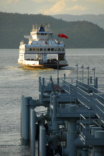 Keywords: ferry harbor sunset ocean island forest