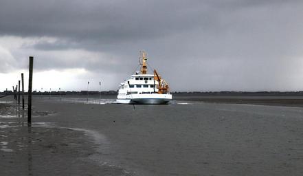 Keywords: ferry ship north sea island baltrum sea gateway port fairway clouds dark