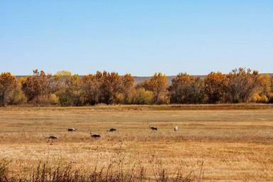 MAKE A MEME View Large Image Sandhill Cranes in the field just South of Dabbler Deck. Jessie Jobs/USFWS