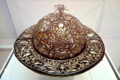 | Keywords: Festival Hat, part of a Curaca Costume, Potosi, Bolivia, 18th century, repousse silver plaques on velvet, glass beads, wire - Brooklyn Museum - Brooklyn, NY - DSC08245.JPG en Exhibit in the Brooklyn Museum - Brooklyn New York USA This artwork is in the public domain because the artist died more than 70 years ago Photography was permitted in the museum without restriction 2013-10-30 11 25 03 own Daderot other versions cc-zero Uploaded with UploadWizard Clothing in the Brooklyn Museum Culture of Bolivia |