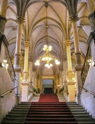 Keywords: Festsaal Rathaus Vienna 2007 001.jpg Neo-gothic staircase in the Rathaus city hall of Vienna Own 2007-09 Gryffindor 48 12 39 5 N 16 21 26 2 E Interior of the Rathaus Vienna