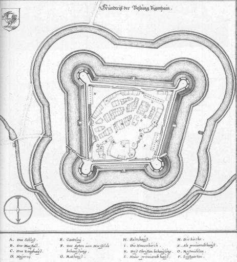 | Keywords: Festung ziegenhain grundriss.jpg Grundriss der Festung bzw der Stadt Ziegenhain im Jahr 1655 arranged by 2micha 1655 creator Matthäus Merian Out of copyright as author died more than 70 years ago picture is part of Image De Merian Hassiae 226 jpg PD-old-100 Schwalmstadt in art Engravings of towns in Germany 1655 |