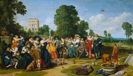 | Keywords: Fete Champetre (1627) Dirck Hals.jpg Artwork Q17324824 Creator Dirck Hals 1627 Oil on panel cm 77 6 135 7 Institution Rijksmuseum accession number SK-A-1796 object history early other date century 19 Straeter Rheine<br /> ProvenanceEvent 1899-05 purchase LangSwitch vom the le het Rijksmuseum Amsterdam P Driessen-Hooreman Delft Price NLG 6000 credit line D HALS 1627 signature and date bottom center http //www googleartproject com/museums/rijks/the-fete-champetre-14 Google Art Project<br /> SK-A-1796 18115 www geheugenvannederland nl http //www geheugenvannederland nl/ /en/homepage Home http //www geheugenvannederland nl/ /en/items/RIJK01 SK-A-1796 Info http //resources21 kb nl/gvn/RIJK01/RIJK01_M-SK-A-1796-00_X JPG Pic Dirck Hals - De buitenpartij - Google Art Project jpg Version from www googleartproject com Dirck Hals - The Fête Champêtre - WGA11037 jpg Version from www wga hu PD-old-100 LangSwitch Notes Noten <references /> ImageNote 1 400 386 129 112 1397 800 2 299px<br /> File Hals Dirck - Fête champêtre detail women - 1627 jpg<br /> detail ImageNoteEnd 1 Dirck Hals 1627 Merry company paintings 1627 Paintings by Dirck Hals in the Rijksmuseum Amsterdam Hals Dirck 1620s fashion 1627 paintings Dutch Golden Age paintings of concerts 17th-century greyhounds in art Greyhounds in art with aristocrats 17th-century way of life in painting Paintings of outdoor concerts |