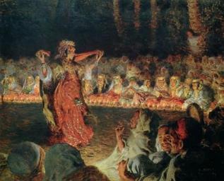 | Keywords: Fete de nuit.jpg Artwork Creator Étienne Dinet 1891 oil on canvas private collection accession number 257 object history credit line http //www mezzo-mondo com/arts/mm/orientalist/european/dinet/index html PD-old-80 Orientalist paintings by Étienne Dinet 257 1891 orientalist paintings Dinet Veils Female dancers in art Dance in orientalist paintings Dinet 1891 in dance Dancers with veil in art Females with penannular brooches | ||||