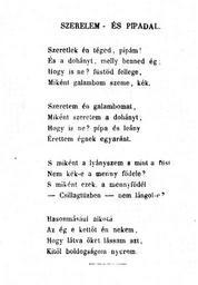 | Keywords: FetÅ‘fi Szerelem- és pipadal 1844 D.jpg PetÅ‘fi Sándor Szerelem- és pipadal c versének a Versek 1842 “1844 kötetben megjelent változata Vargha Balázs szerk A PetÅ‘fi Irodalmi Múzeum Évkönyve 1959 p 149 http //muzeum arcanum hu/kiadvanyok Magyar Digitális Múzeumi Könyvtár 1844 Sándor PetÅ‘fi Pd-old Poems by Sándor PetÅ‘fi 1844 works in Hungary Poems in Hungarian | ||||