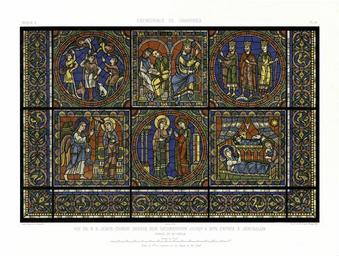 View Original:Feuille A Monografie de la Cathedrale de Chartres - Atlas - Vitrail de la vie de Jesus Christ - Restored Version 62-.jpg (11543x8735)