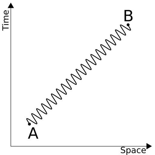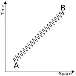 Keywords: Feynman photon c.svg en Feynman diagram of a virtual photon travelling at the speed of light represented by a 45° angle from A to B own Sjlegg 2009-05-12 Feynman diagrams
