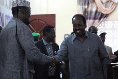 | Keywords: FG PRESIDENT SHAKE HANDS WITH IJA LEADER.jpg (15079915598).jpg en A delegation led by the Federal Government of Somalia's President H E Hassan Sheik Mohamud arrived in Kismayo International Airport Shortly after he arrived he was escorted by AMISOM to Kismayo's parliament and opened the Peace and Reconciliation Conference for the Jubbaland people Other high delegates who took part and attended the Meeting were IGAD traditional elders civil society leaders the Arab League the Italian Ambassador to Somalia and religious elders from the Jubbaland and Gedo region AMISOM Photo / Mohamed Barut 2014-09-16 13 40 00 https //www flickr com/photos/au_unistphotostream/15079915598/ Flickr en AMISOM Public Information AMISOM Public Information https //flickr com/photos/61765479 N08/15079915598 2015-11-28 09 35 49 cc-zero cc-0 Photographs by the African Union Mission to Somalia Sharif Hassan Sheikh Adan Jubbaland Reconciliation Conference September 2014 |