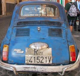 Keywords: fiat cinquecento 500 car classic italy roma historic vehicle automobile auto vintage retro transport italian blue icon iconic rear end engine hatch