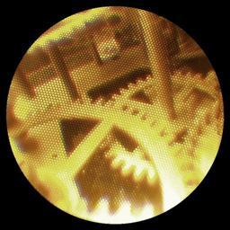 Keywords: Fiberscope (view inside clock).png View through a low-cost mechanic/carpentry fiberscope SLI PV300 with approx 6000 fibers View is inside an antique clock Fiber optics