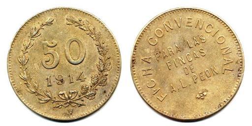 | Keywords: Ficha por $ 0.50 de las fincas de Agusto L. Peón de 1914, Yucatán (01)(anverso y reverso).jpg es Ficha por 0 50 de las fincas de Agusto L Peón de 1914 Yucatán anverso y reverso 2013-11-07 09 54 28 own Inri PD-Mexico cc-zero Uploaded with UploadWizard Coins of Mexico |