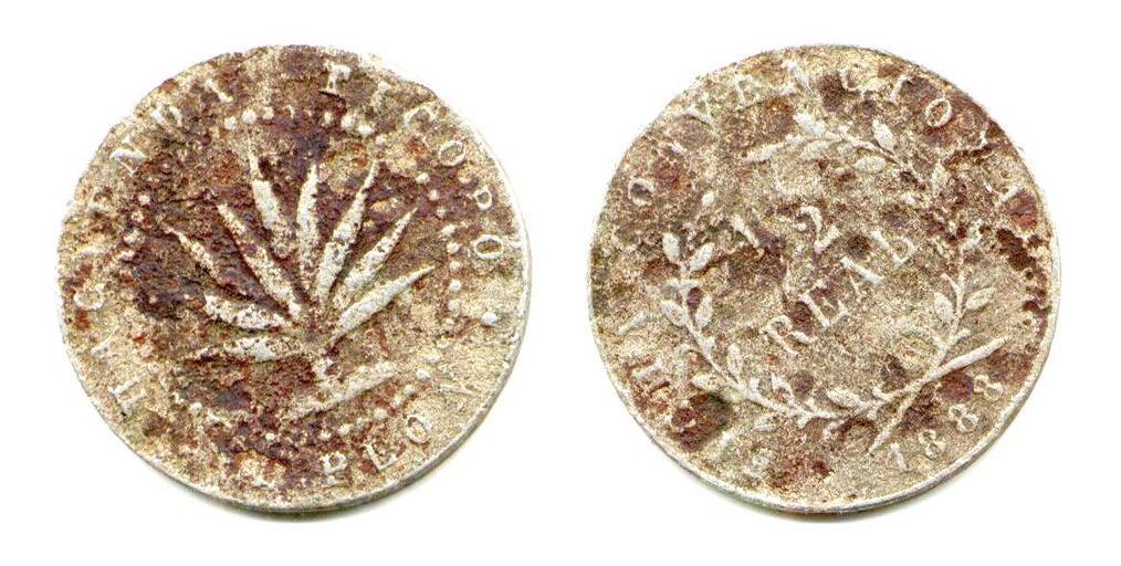 View Original:Ficha por medio real de la Hacienda Ticopó, Yucatán de 1888 (01)(anverso y reverso).jpg (1165x588)