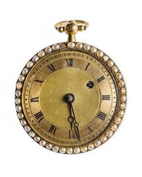 | Keywords: Fickur av guld med emalj och orientaliska pärlor, 1800 - Hallwylska museet - 110404.tif LSH artwork sv Boett av guld med emalj och orientaliska pärlor verk med s k spindelgång Bottenskal svagt konvext löst utan scharner På skalet ett klöverbladsmönster av pärlor på snedrutad botten av mörkblå genomskinlig translucide emalj med ett uppåtriktat blad i varje ruta varje blad med tre djupt i emaljen infattade pärlor och skaft i vit täckemalj samt begränsat av en smal guldrand i korsningarna mellan rutorna en liten pärla av röd genomskinlig emalj Däromkring en bård varpå i guld mot ljusblå botten i täckemalj parvis längdställda korta streck och runda prickar mellan två smala kantränder Kring ytterkanten en rad av fyrtiosex pärlor fattade i faden och med avdeckningar; kring sidokanten en smal käl Glasram med svagt konvext glas och i dekor som bottenskalets ytterkant samt med en rad av fyrtiofyra pärlorGåva från kungen till grevinnan Christina Maria Sommerhjelmlefi 2015-08-12 original caption Fickur av guld med emalj och orientaliska pärlor 1800 <br/> Nyckelord Ur Klocka Fickur Föremålsbild Pärlor ca 1800 gold - pearls orientaliska - steel orientaliska - silver orientaliska - enamel - brass orientaliska size cm 9 etui g 33 3 size cm 3 8 size cm 7 1 etui size cm 2 3 etui g 39 3 etui HWY Det Glittrar prel till 30 aug 2015 2014-2015 Livrustkammaren place of origin FR original filename hm_dig24454 16127 inventory number HWY XXXVIII G a 21 110404 CC-BY-SA Helena Bonnevier <gallery caption Different images of same object > File Fickur 1800 cirka - Hallwylska museet - 98901 tif File Boett från 1800 cirka - Hallwylska museet - 98902 tif File Fickur av guld med emalj och orientaliska pärlor 1800 - Hallwylska museet - 110405 tif </gallery> Pearls Pocket watches Watches Accessories Helena Bonnevier Media contributed by LSH dim-with multiple size templates Media contributed by LSH 2016-12 |