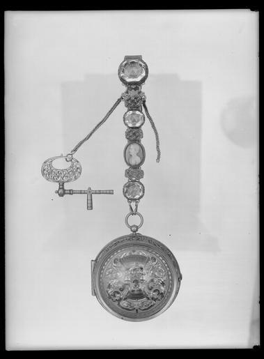 | Keywords: Fickur, J. Bellete, London 1700-1701 - Livrustkammaren - 77959.tif  Fickur av guld s k montre à guichet titthålsur Tim- och minutangivelse sker genom två fasta visare och två svängda öppningar täckta av två blånerade och förgyllda skivor med signering BELLETE respektive LONDON Bakre verkbotten watch cock med graverad signatur två rader J Bellette // London Till höger liten tavla av silver med gradering 1-6 med kvarts- och halvtimmesmarkeringar Däröver en rund genombruten platta från överkanten till strax under mitten Därpå Karl XII s krönta namnchiffer omgivet på vardera sidan de svenska tre kronorna Längs kanten dedikation CAROLUS DUODECIMUS VIVAT FLOREAT TRIUMPHAT Nertill två sammanbundna palmkvistar förbundna med cirkelsegment till nederkanten Därpå rankverk och trofégrupp med antikt harnesk i mitten kanon fanor trumma mm <br/>På inre boetten engelska guldstämplar för 1700-1701 Leopard's head och Lion passant samt I W original caption Stölden på Livrustkammaren 1968 1701 gold - enamel size mm 57 m trycke size mm 48 size mm 32 g 121 LRK Statens historiska museum Wilhelm III av England Storbritannien kung 1650-1702 Haag Holland Ulrika Eleonora av Sverige Karl XII av Sverige Kunglig tid Kunglig tid 1999 Tidens Form Nationalmuseum 2008 C spegelmonogram Karl XII av Sverige I W anonym guld- och silversmed C spegelmonogram Karl XII av Sverige I W anonym guld- och silversmed place of origin London original filename LN_B06269_009149 55528 inventory number LRK 18993 77959 CC0 Fickur J Bellete London 1700-1701 - Livrustkammaren - 77959-negative tif <gallery caption Different images of same object > File Fickur J Bellete London 1700-1701 - Livrustkammaren - 26772 tif File Fickur J Bellete London 1700-1701 - Livrustkammaren - 915 tif </gallery> Media contributed by LSH unmatched event Media contributed by LSH dim-with multiple size templates Media contributed by LSH unmatched creator Media contributed by LSH unmatched objKeyword Pocket watches 18th-century watches Chatelaines Clock keys Media contributed by LSH 2013-10 wikipedia sv Ulrika Eleonora |
