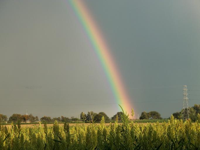 Keywords: field cloudy rainbow trees plants colors sky rain sorghum gardening water red blue yellow green colorful natural summer landscape nature scotland peace beautifu