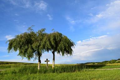 Keywords: field cross landscape sky tradition rural clouds nature bavaria wittelsbacher country birch lonely home
