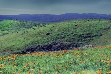 Keywords: field hills green wild flowers puppy blue summer landscape nature sky meadow outdoor grass country scenery countryside sunlight view sunny scenic land plant season sunset cloud scene sunrise mountain