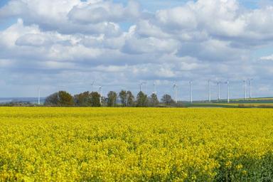 Keywords: field of rapeseeds clouds sky yellow blue beautiful landscape oilseed rape rape blossom crop rapeseed oil sunbeam