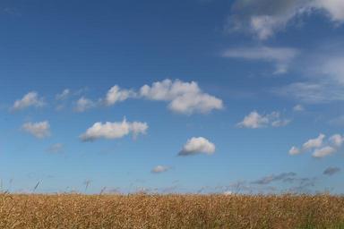 Keywords: field of rapeseeds faded summer blue sky clouds summer clouds