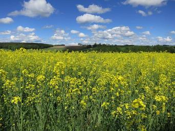 Keywords: field of rapeseeds sky clouds yellow landscape oilseed rape rape blossom rare plant rural