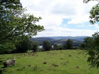 Keywords: field view county wicklow ireland nature pasture sky meadow countryside outdoor landscape scenery boulder tree